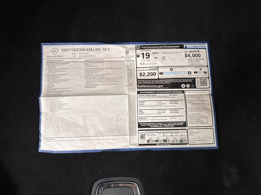 Standard Equipments on 2017 Mercedes-Benz GLE GLE 350 4MATIC SUV in Plainville, CT